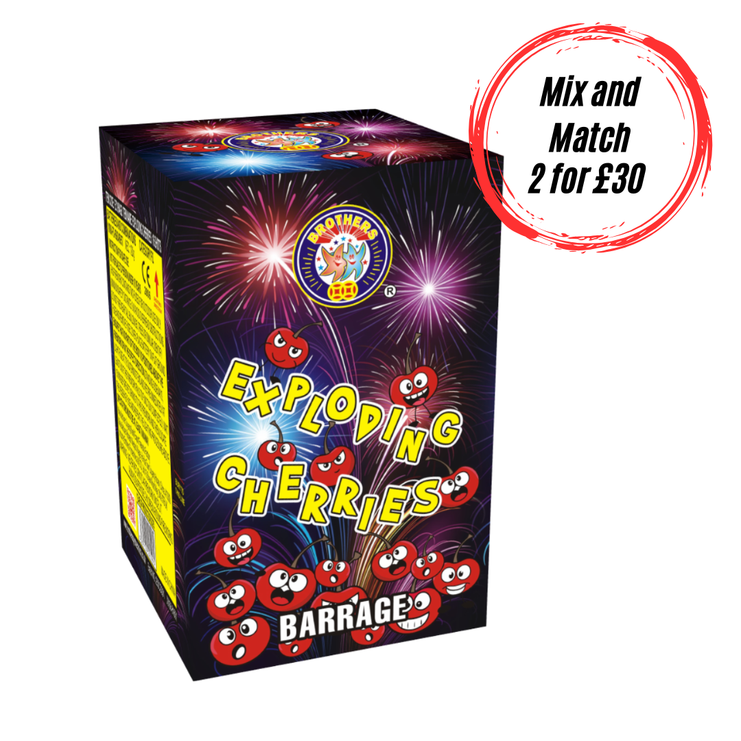 Exploding Cherries by Brothers is a 16 shot barrage, with it’s amazing bursts that are consistently bright red with a bit of blue. Great value from Brothers once again with it being one of the best affordable barrages out there, making it simply perfect for any occasion!