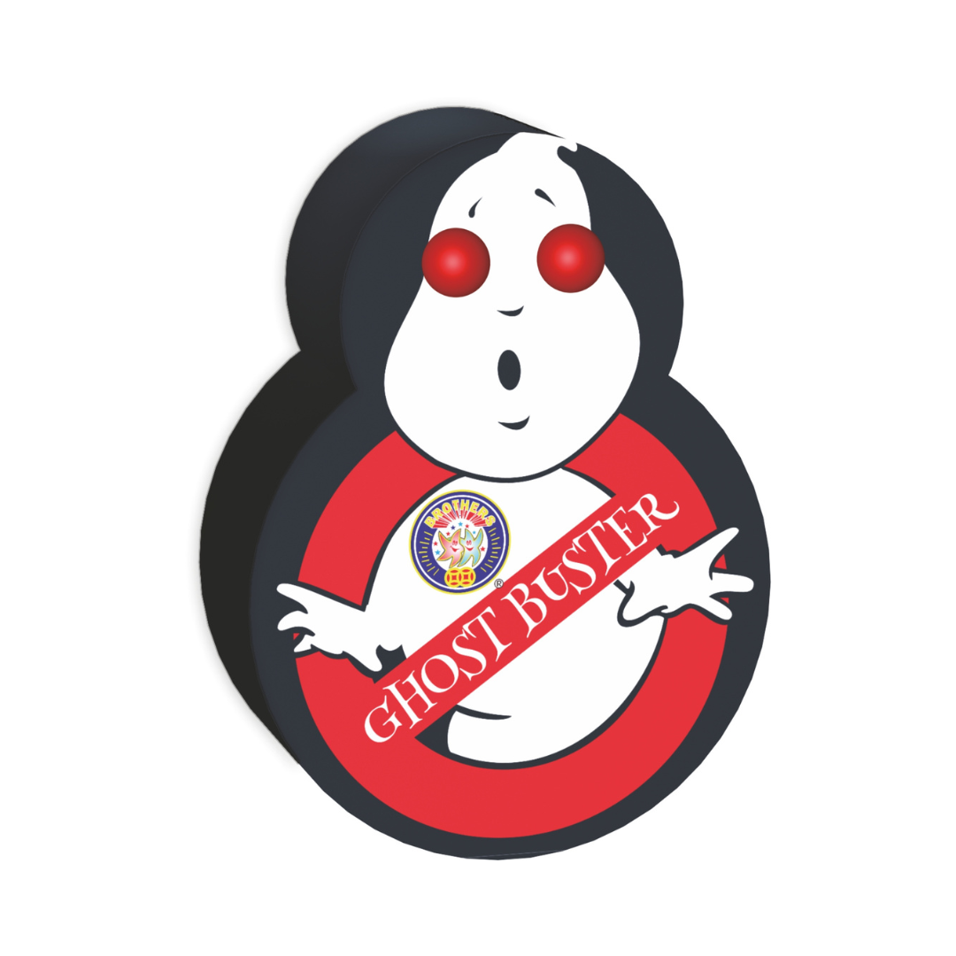 Who you gonna call? Add some spooky sparkle to your fireworks display with Ghost Buster – a brilliant multi-effect fountain firework packed with surprises and charm. This fun, ghost-shaped firework starts with a lively flurry of silver sparks, then shifts through a colourful sequence of crackling pearls, green flares, white stars, and even a whistling effect to keep the crowd entertained.