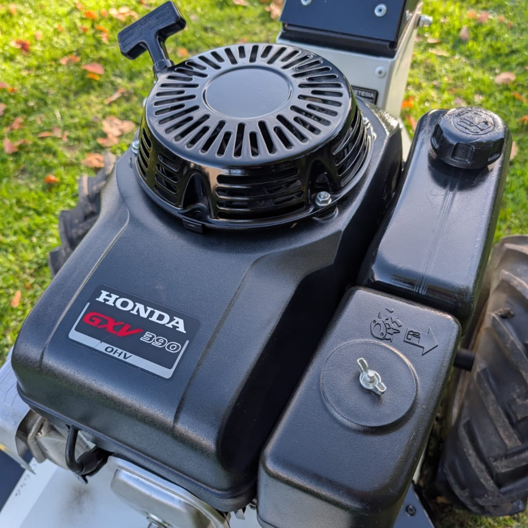It is rugged and manoeuvrable and can handle slopes up to 30 degrees thanks to the hydraulic transmission with a differential lock. It is fitted with a Honda 4-stroke engine and features 3 cutting heights.  It is designed for work in the most difficult conditions and is ideal for meadows, orchards, fallow land and roadsides.